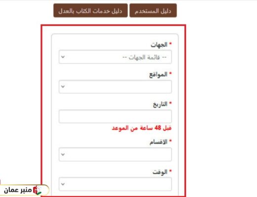 فيما يلي خطوات حجز موعد كاتب العدل في العامرات: